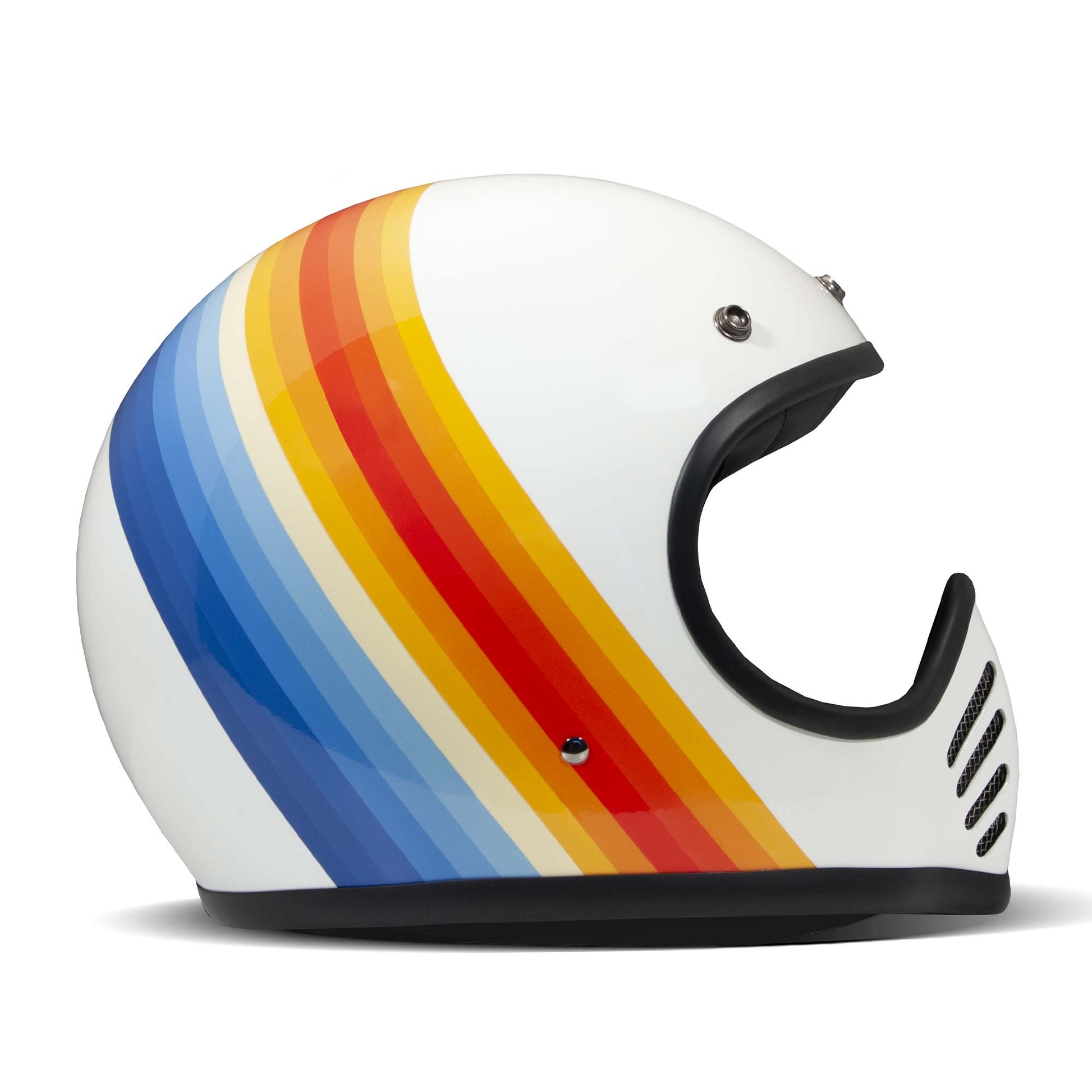 The DMD Seventy helmet is an awesome retro piece of motorcycle gear, designed with off-road helmets of the 70s in mind. An aggressive chin bar with slanted vents, and a massive aperture that will fit pretty much any set of retro style or MX style goggles (we recommend the DMD Ghost goggles).